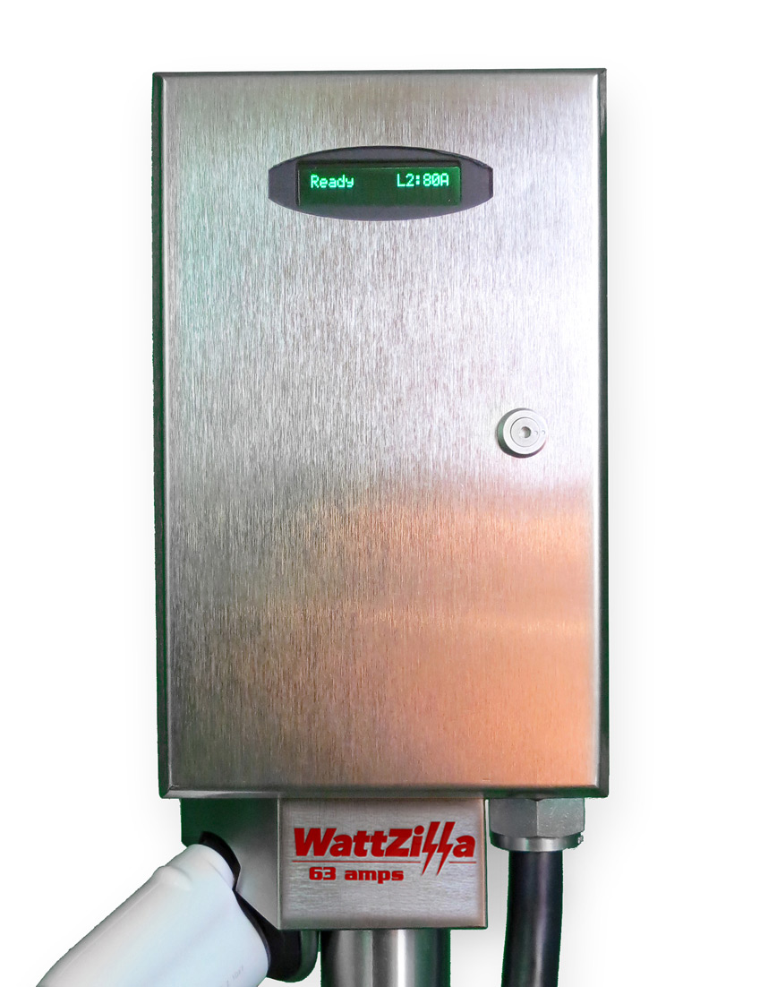The WattZilla® Euro-UNO is the world’s first 63AMP electric vehicle charging station capable of charging as much as 63AMPS, single or three three phase power. Housed in a beautiful, weather-proof IP66 stainless steel enclosure, the Euro-UNO can be wall or pole mounted for indoor or outdoor use.